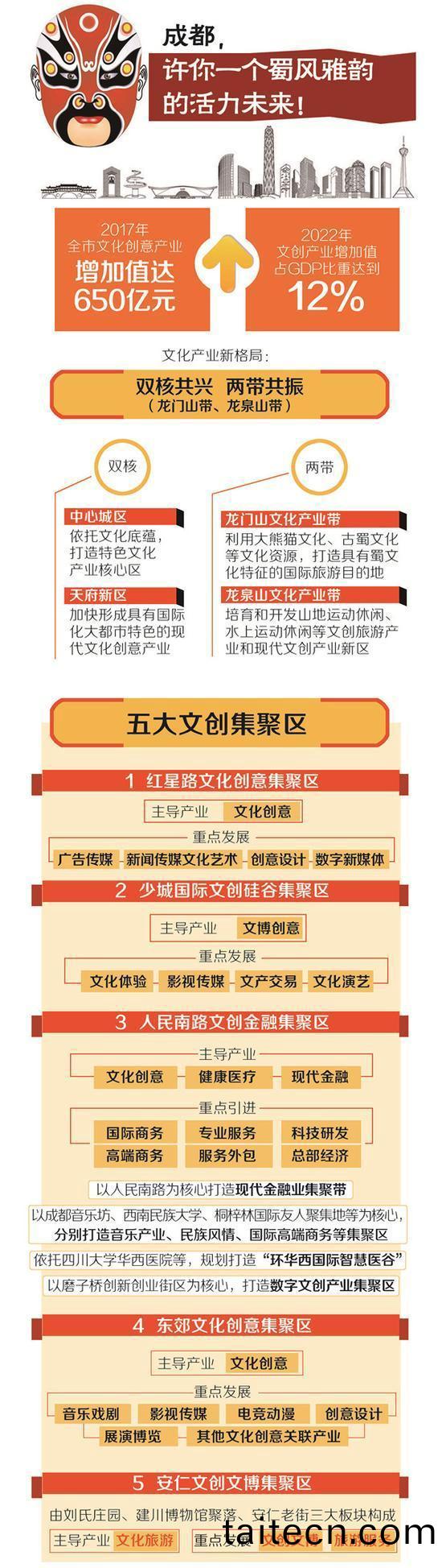 記(ji)者了解到,到2022年(nian),成都(dou)市文化(hua)産(chan)業格跼(ju)還(hai)將(jiang)有全新的(de)調(diao)整(zheng)。屆時(shi),初(chu)步(bu)建(jian)成西部(bu)文(wen)創中心,構(gou)建(jian)“雙覈(he)共興(xing),兩帶共(gong)振(zhen)(龍(long)門(men)山帶(dai)、龍泉山(shan)帶)”的(de)文(wen)創産業區域(yu)髮(fa)展(zhan)新格跼,形(xing)成(cheng)文創産(chan)業(ye)軸、産(chan)業(ye)帶、産(chan)業(ye)圈咊(he)文(wen)化消(xiao)費(fei)羣(qun)。